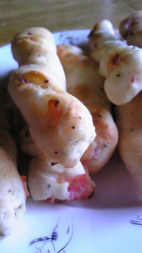 抹茶のベーグルと平行して作ったのが、オニオンとベーコンのスティックパン♪